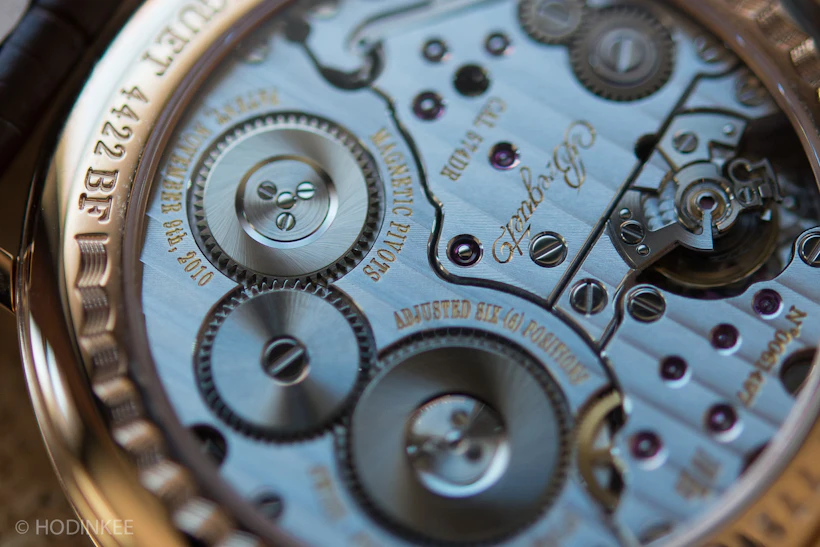 Okay, weiter zur Bewegung. Der 574DR ist, wie ich schon sagte, ein spektakulär innovatives Werk, vollgepackt mit Silizium mit einer Hochgeschwindigkeits-Ankerhemmung und einer Art Stoßfestigkeit, die eines Tages zum Industriestandard werden könnte (wenn Breguet es zulässt) von anderen benutzt). Was der 574DR nicht ist, ist perfekt erledigt. Ich möchte nicht, dass irgendjemand das, was ich hier sage, falsch interpretiert - ich denke, es ist gut fertig, aber es gibt einige Berichte, dass Breguet den Fokus viel mehr auf die technische Innovation als auf das traditionelle Handfinishing gelegt hat. Und weisst du was? Das ist in Ordnung, und sogar erwartet, weil das sein, wie AL Breguet selbst Uhren gebaut hat.